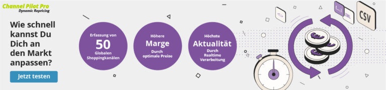Mit der dynamischen Preisanpassung von Channel Pilot Pro wurde eine intelligente Lösung geschaffen, mit der Du in Echtzeit und ohne viel Aufwand vollkommen automatisiert die bestmögliche Preisfindung vornimmst, um stets die optimalen Preise auszuspielen und langfristig wettbewerbsfähig zu bleiben.