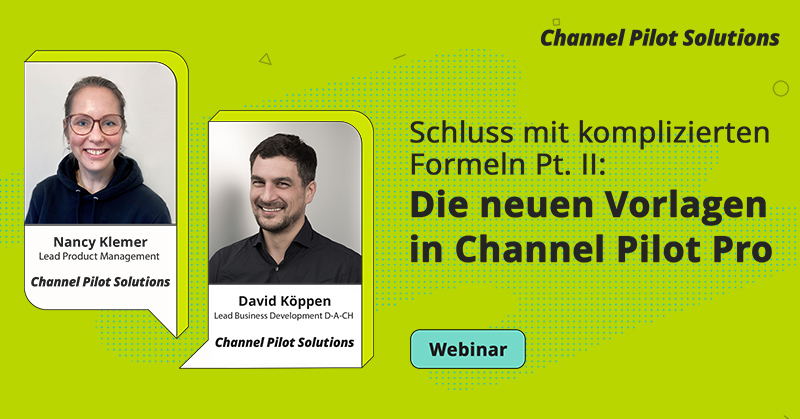 Im zweiten Teil unserer Serie “Schluss mit komplizierten Formeln” lernst Du das brandneue Feature in Channel Pilot Pro kennen: die Vorlagen! Mit den Vorlagen kannst Du Deine Arbeit in unserem Tool unglaublich vereinfachen, denn unser Feature kann zahlreiche Problemlösungen abbilden, ohne dass dafür lange Formeln geschrieben werden müssen.
